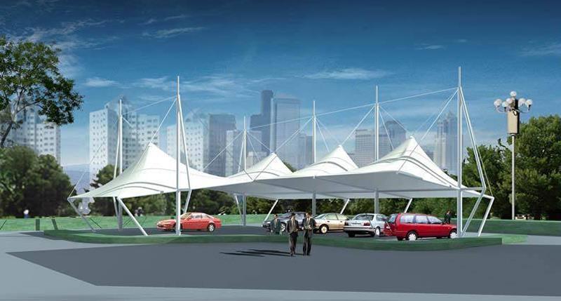 東莞草莓色视频在线观看停車棚,是以建築物即膜原材料為張拉主體,與支撐構件或鋼索相互構成的構造體係,它以其新奇獨特的建築造型,優良的受力特性,成為大跨度空間結構的關鍵方式之一。膜原材料就是指聚酯纖維基布或PVDF、PVF、PTFE等不一樣的表麵塗層,配上高品質的PVC構成的具備穩定的形狀,並可承擔一定荷載的工程建築產品。它的使用壽命因不一樣的表麵塗層而異,一般可達到10-20年。